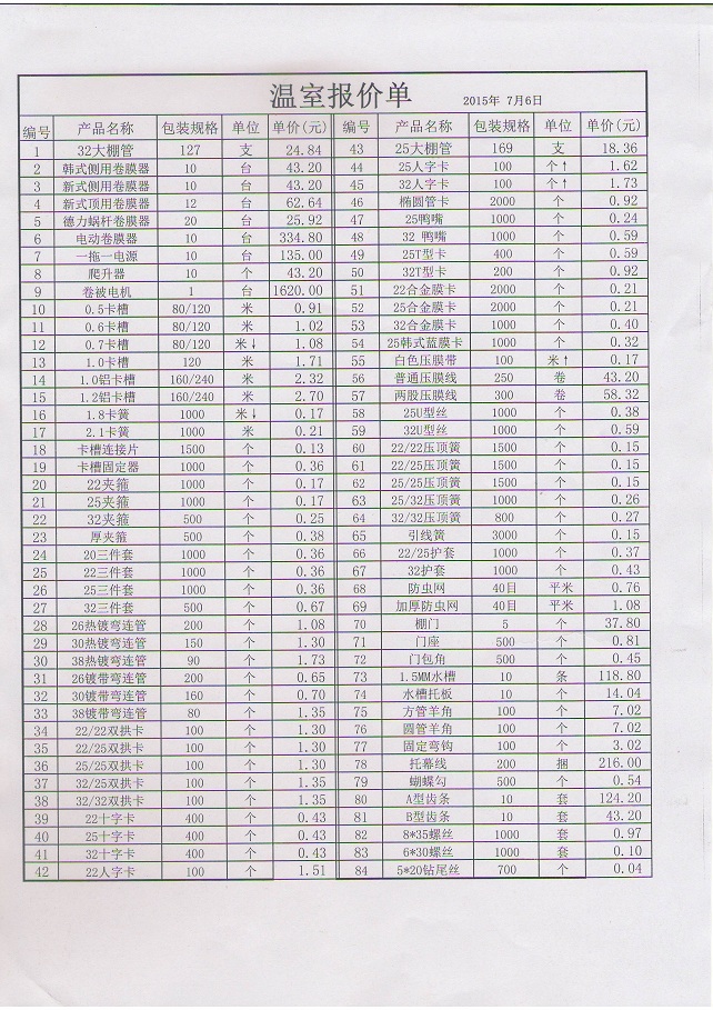 溫室大棚配件報價